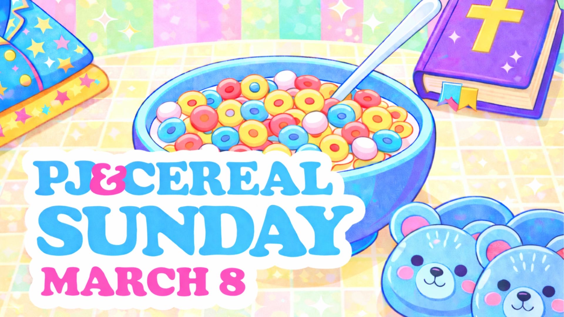 This Daylight Savings Sunday, March 8th, let’s make losing an hour a little more fun—kids are invited to wear their PJs and enjoy a cozy cereal breakfast as we welcome the time change. Don’t forget to set your clocks forward and join the fun!